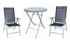 1) 1pc Steel Foldable Table and 2pcs 7-Step Adjustable Aluminium Chairs 2) Table Size: 60 (D) x 71 (H)cm, 5mm Thickness Temperate Glass, Table Face Steel: 34 x 18 x 1.0mm3) Chair Back (H): 107cm - 84cm, Seat Height: 43cm, Depth: 45cm, Width: 45cm, Arm Width: 56cm, Arm Height: 67cm4) Powder coatingInner packing: Plastic BagOuter packing: Carton N.W.: 15.6kg G.W.: 19.6kg